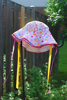 I had a friend come by with a last minute request to attach ribbons to her daughters' beach hats. Lord knows those hats blow right off in the wind!